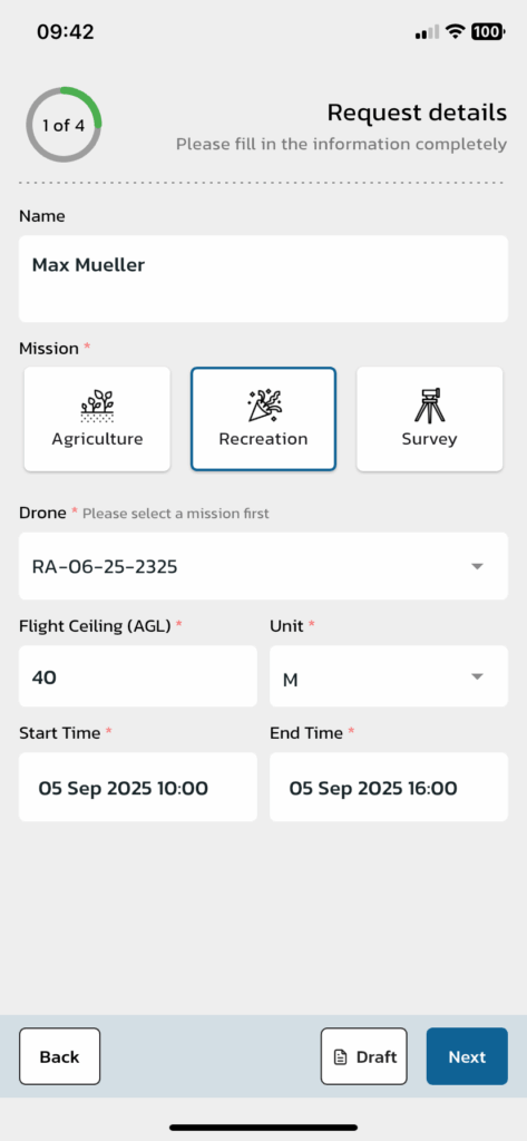 – Drohnenflüge müssen mindestens 3 Tage im Voraus angemeldet werden, das geht am einfachsten über die App UAS Portal. Hier geht’s zur Anleitung.